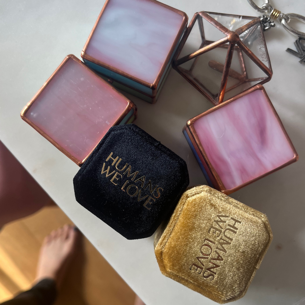 これ ゴージャスな手作りのリングボックスは、ウクライナのリヴィウに住むオスタップ(元建築家)とダニーロ(マーケティング担当者)の二人の兄弟によって作られ、デザインされています。彼らは2014年に家族がステンドグラス事業を営んでおり、母親のガラス作りを手伝いながら技術を開発して生まれました。