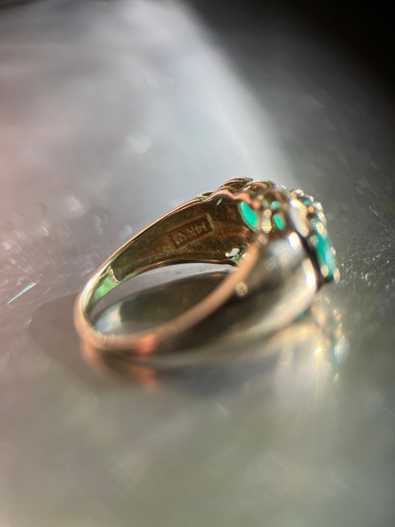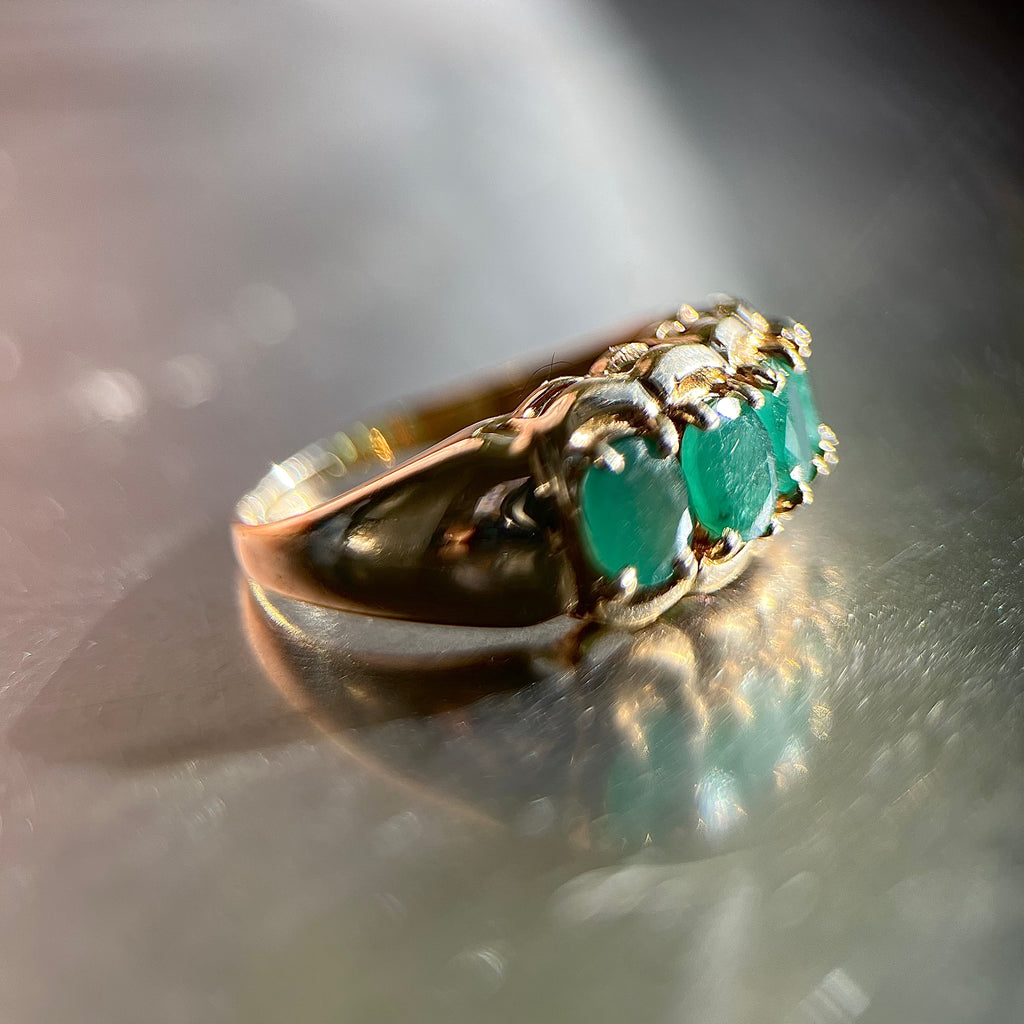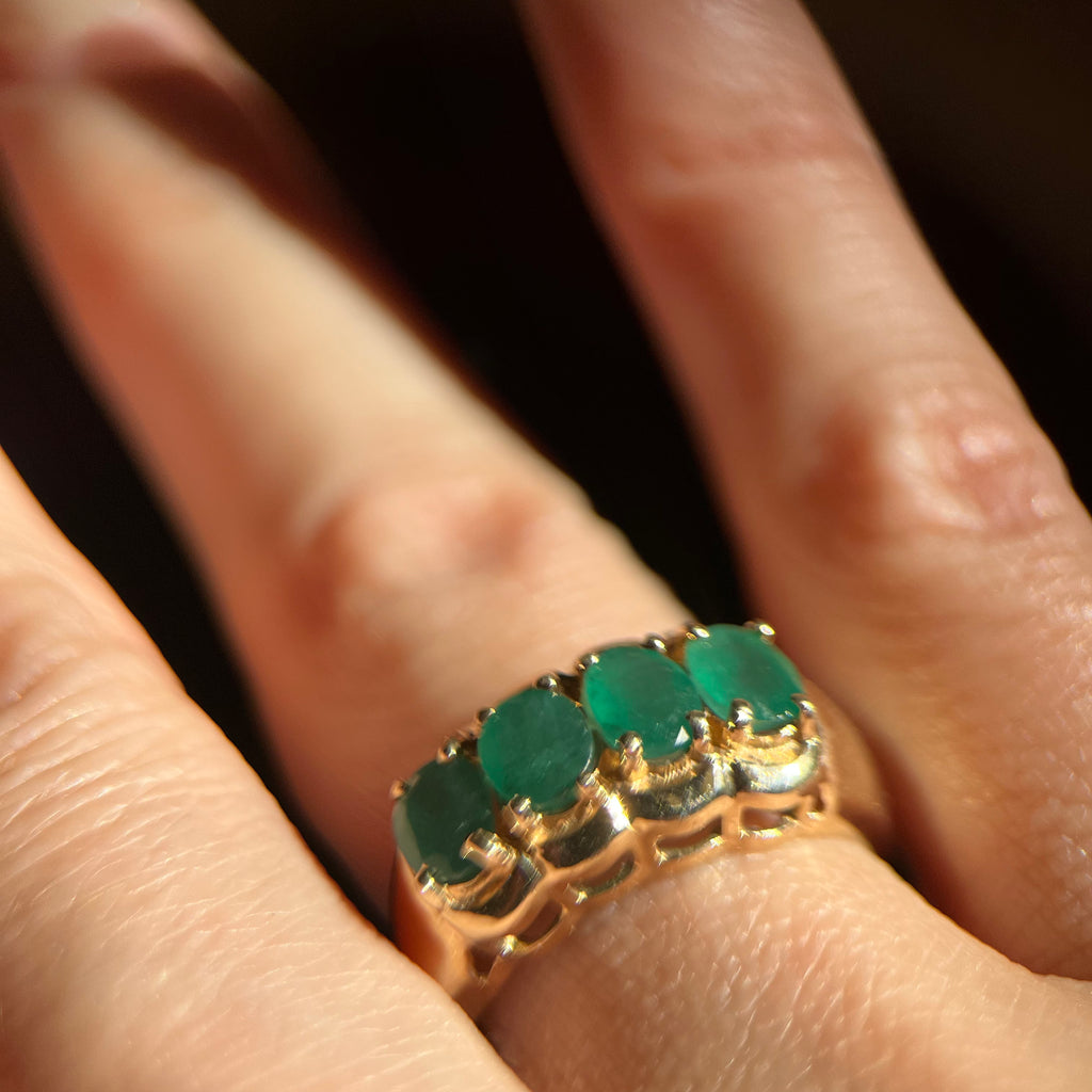 1970年代の4つのエメラルドツリーリング 1.05 CTW、14Kソリッドゴールド