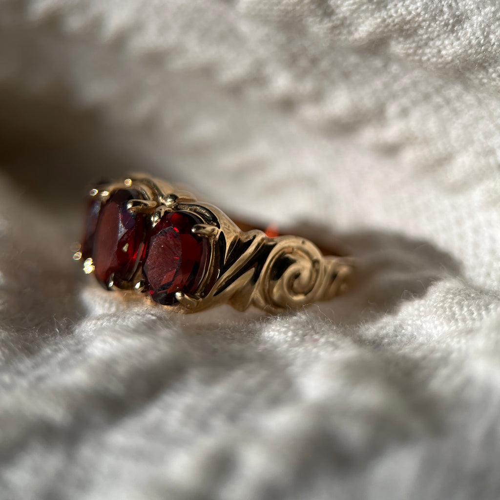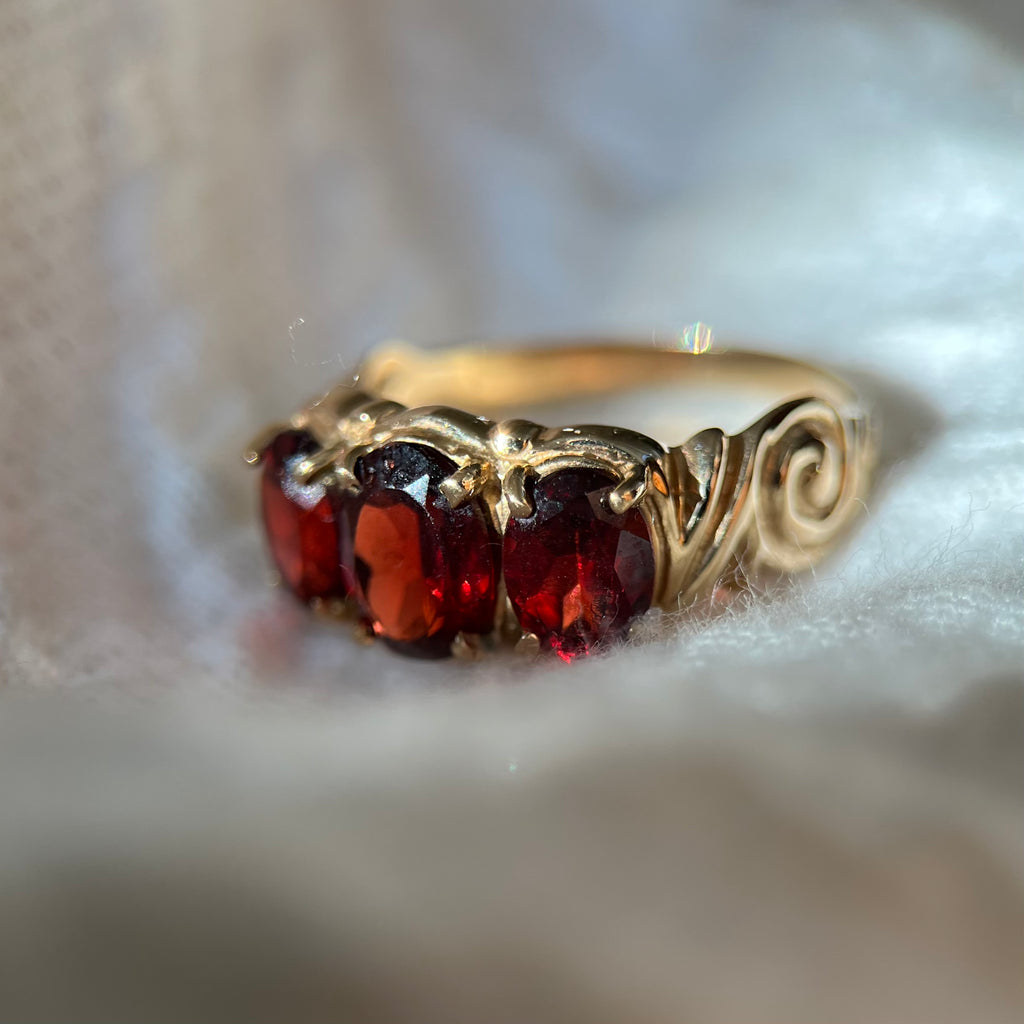 【完売】ミッドセンチュリー 合計 3.27 カラット アルマンディン ガーネット スリーストーン 10K ゴールド リング