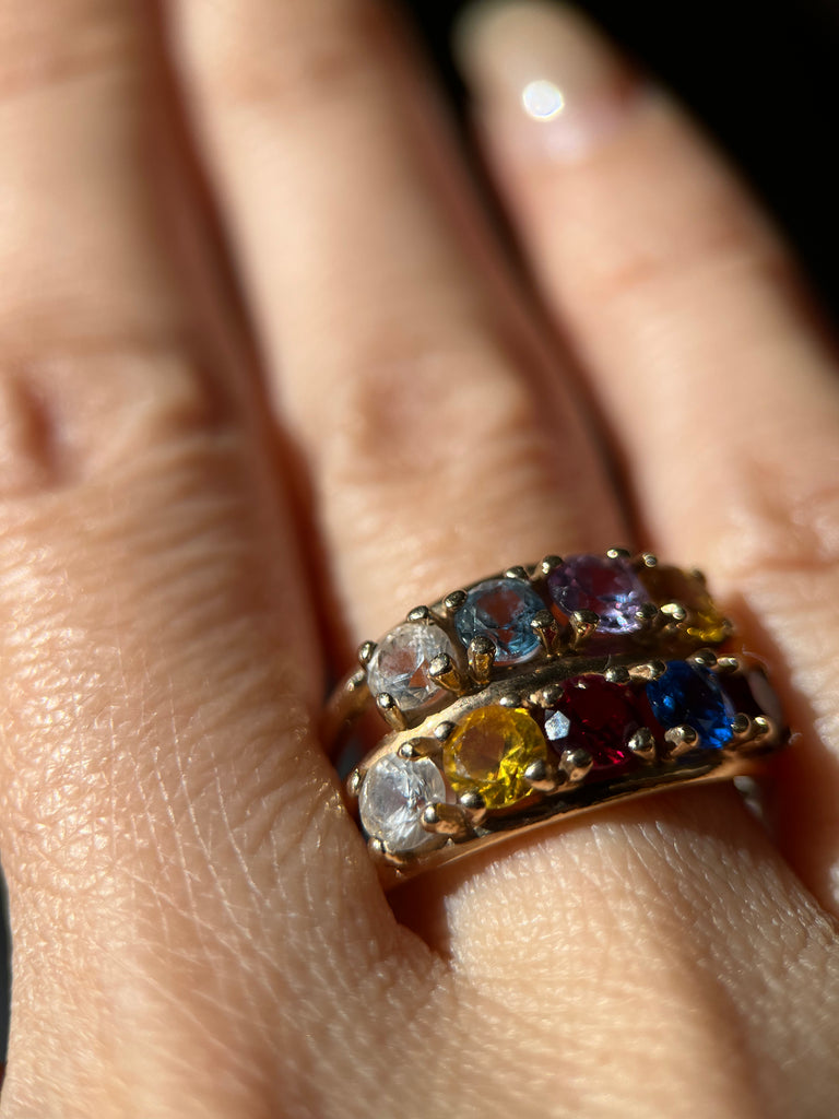 1960 年代のダブル レインボー リング: 10K ソリッド ゴールド + 9 サファイア
