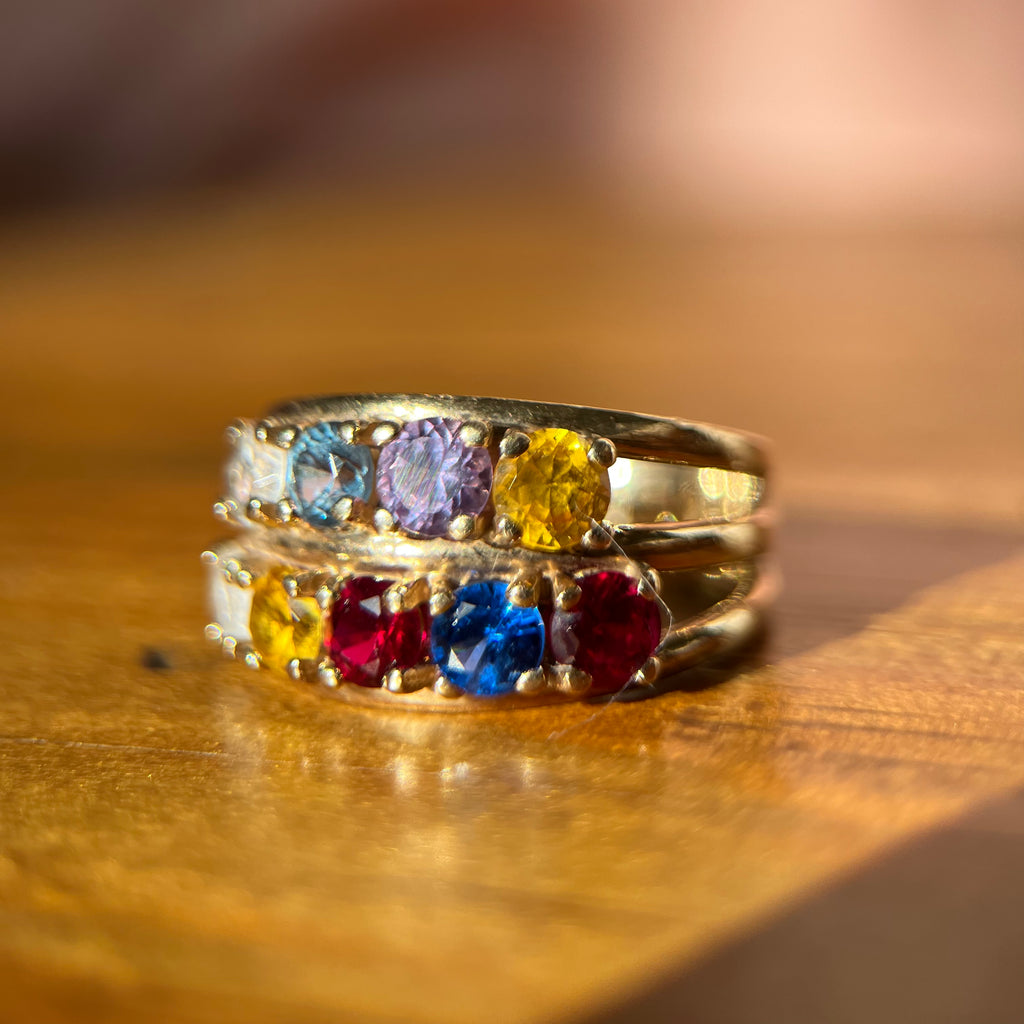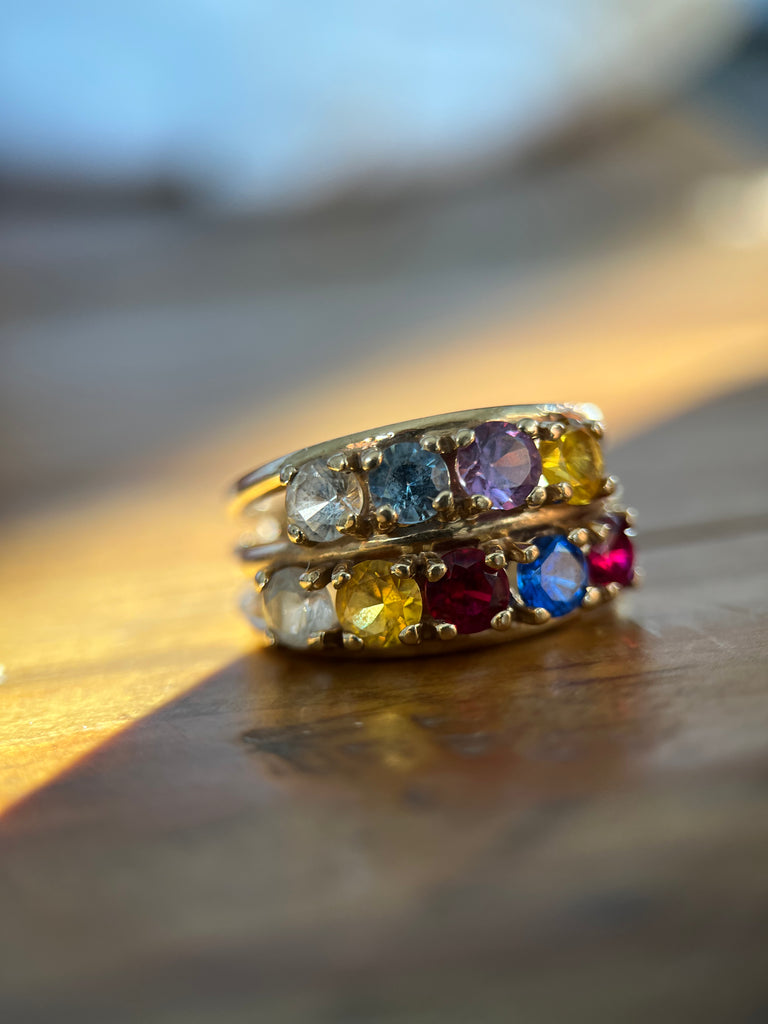 1960年代 ダブル レインボー ナイン サファイア リング: 10K ソリッド ゴールド