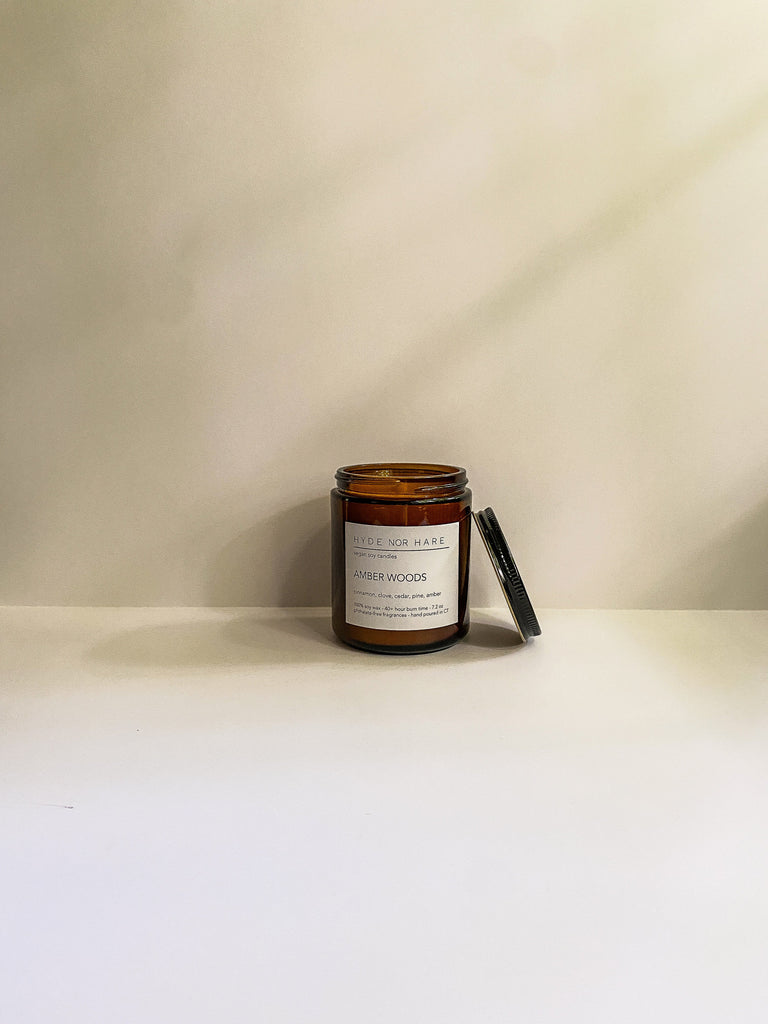 「ヴィーガンである私にとって、動物性原料を一切含まないキャンドルを作ることが重要でしたが、さらに一歩進めて、毒素、フタル酸エステル類、添加物、染料、環境に優しい製品を作りたかったのです。何時間も研究、テスト、開発を行った結果、HYDE NOR HARE キャンドルは 100% 大豆ワックス、綿と紙だけで作られた生の芯、フタル酸エステル不使用のフレグランス オイル、ガラスの瓶と金属製の蓋。それだけです。純粋でシンプルです。ああ、香りも素晴らしいです。提供されるフレグランスはどちらも慎重に厳選され、カスタムブレンドされた香りで、主に自然、放浪癖、季節の変化からインスピレーションを得ています。また、寄付金の 5% を寄付します。私たちの利益はJP Farm Animal Sanctuaryに寄付されるので、購入についてさらに安心していただけます。」