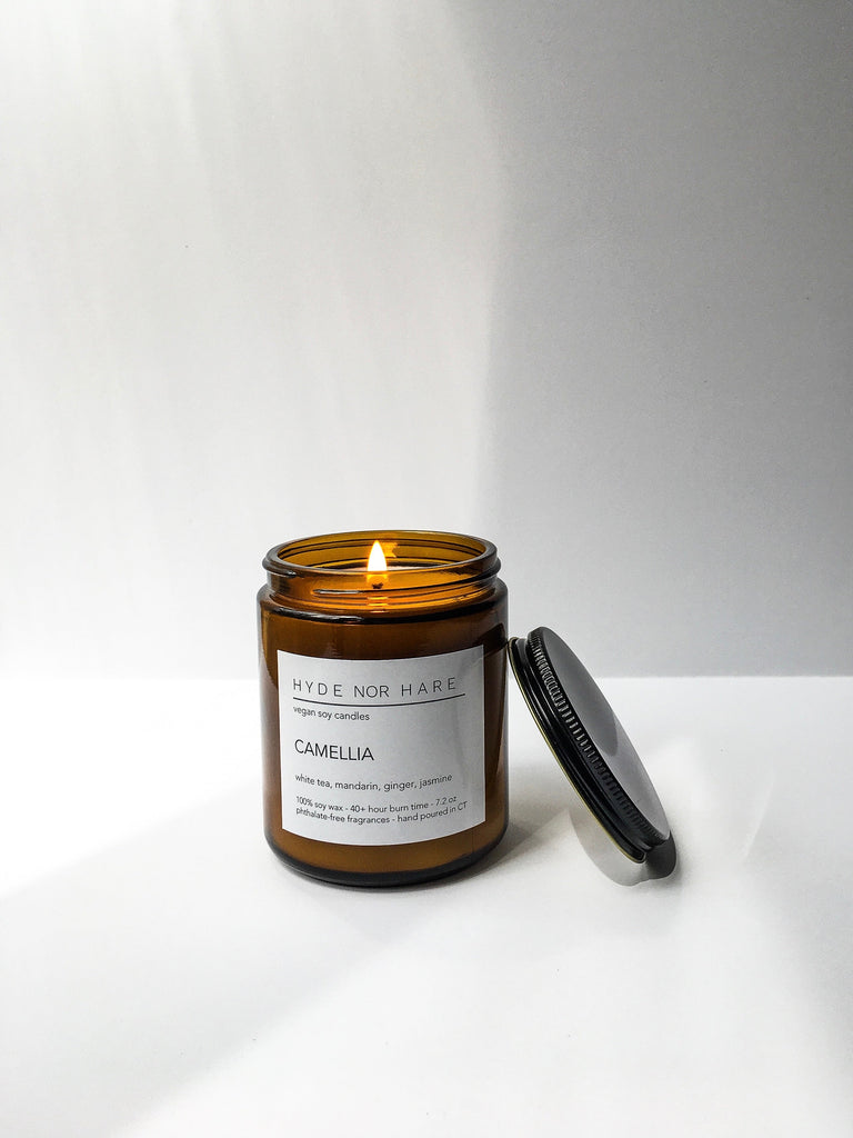 「ヴィーガンである私にとって、動物性原料を一切含まないキャンドルを作ることが重要でしたが、さらに一歩進めて、毒素、フタル酸エステル類、添加物、染料、環境に優しい製品を作りたかったのです。何時間も研究、テスト、開発を行った結果、HYDE NOR HARE キャンドルは 100% 大豆ワックス、綿と紙だけで作られた生の芯、フタル酸エステル不使用のフレグランス オイル、ガラスの瓶と金属製の蓋。それだけです。純粋でシンプルです。ああ、香りも素晴らしいです。提供されるフレグランスはどちらも慎重に厳選され、カスタムブレンドされた香りで、主に自然、放浪癖、季節の変化からインスピレーションを得ています。また、寄付金の 5% を寄付します。私たちの利益はJP Farm Animal Sanctuaryに寄付されるので、購入についてさらに安心していただけます。」