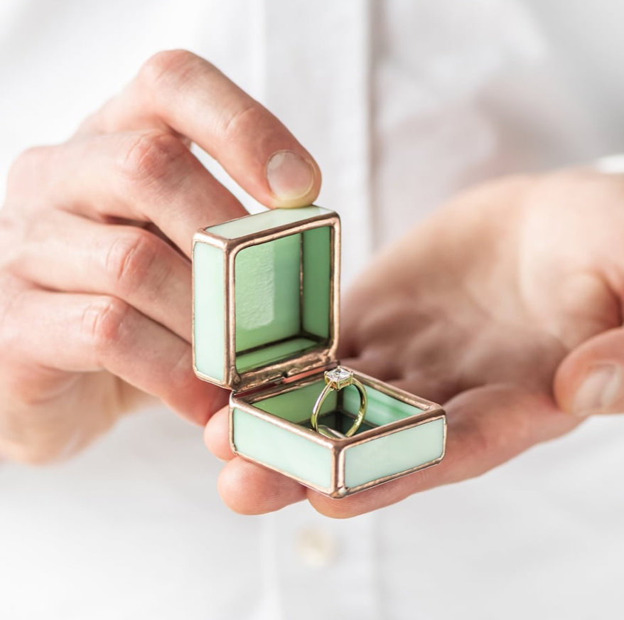 このゴージャスな手作りのリングボックスは、ウクライナのリヴィウに住む二人の兄弟によって作られました。彼らの家族はステンドグラスのビジネスを営んでおり、そこからこの美しい小さな箱が生まれました。