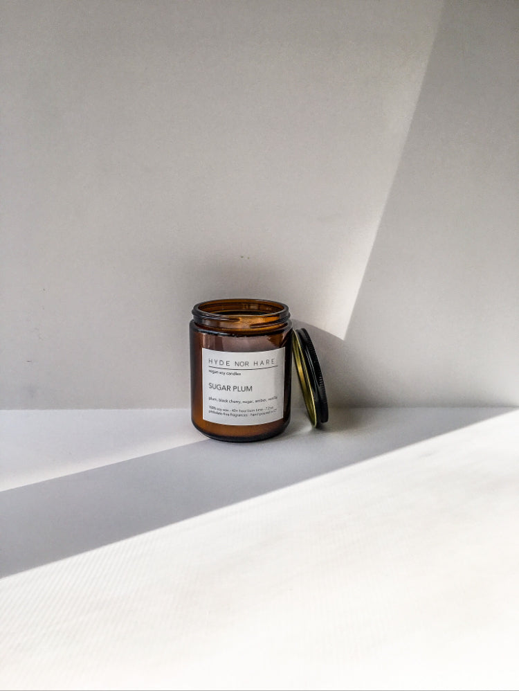「ヴィーガンである私にとって、動物性原料を一切含まないキャンドルを作ることが重要でしたが、さらに一歩進めて、毒素、フタル酸エステル類、添加物、染料、環境に優しい製品を作りたかったのです。何時間も研究、テスト、開発を行った結果、HYDE NOR HARE キャンドルは 100% 大豆ワックス、綿と紙だけで作られた生の芯、フタル酸エステル不使用のフレグランス オイル、ガラスの瓶と金属製の蓋。それだけです。純粋でシンプルです。ああ、香りも素晴らしいです。提供されるフレグランスはどちらも慎重に厳選され、カスタムブレンドされた香りで、主に自然、放浪癖、季節の変化からインスピレーションを得ています。また、寄付金の 5% を寄付します。私たちの利益はJP Farm Animal Sanctuaryに寄付されるので、購入についてさらに安心していただけます。」