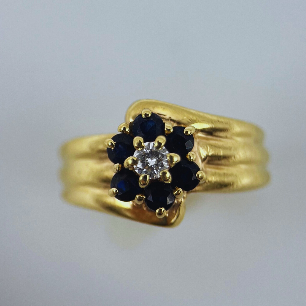 ブラック デイジー リング: スピネルとダイヤモンド 14K ソリッド イエロー ゴールド